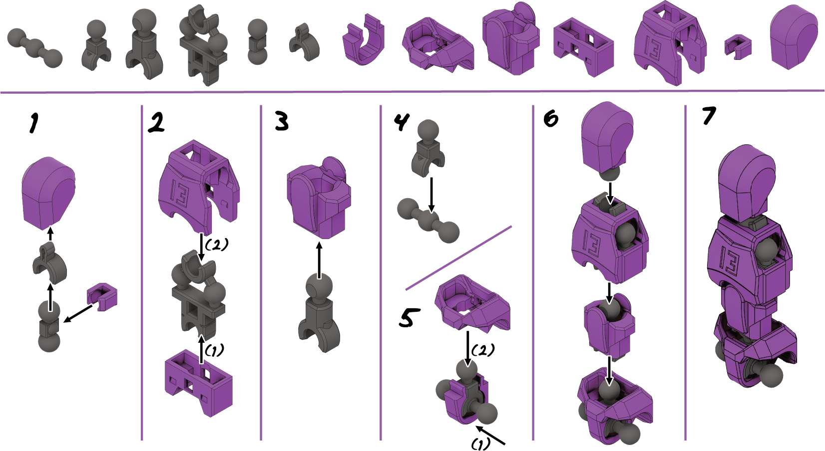 Follow the instructions paying attention to the arrows and the order in which they are to be assembled.